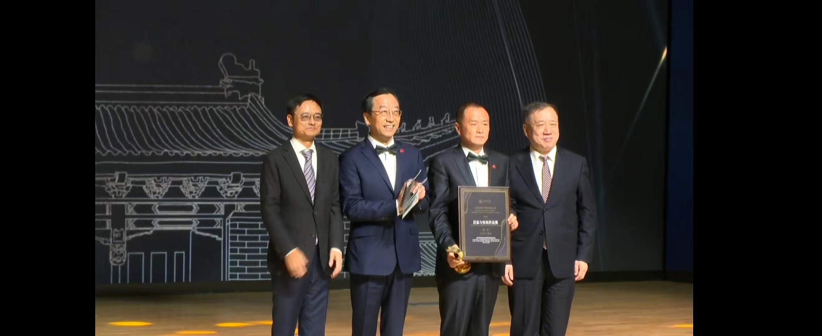 图右二为梅宏 1982届机械工程系本科校友、中国工程院院士、中国船舶集团有限公司第七〇一研究所科技委主任、总设计师徐青,获“睿远科技大奖”海洋工程与海洋科学奖。
